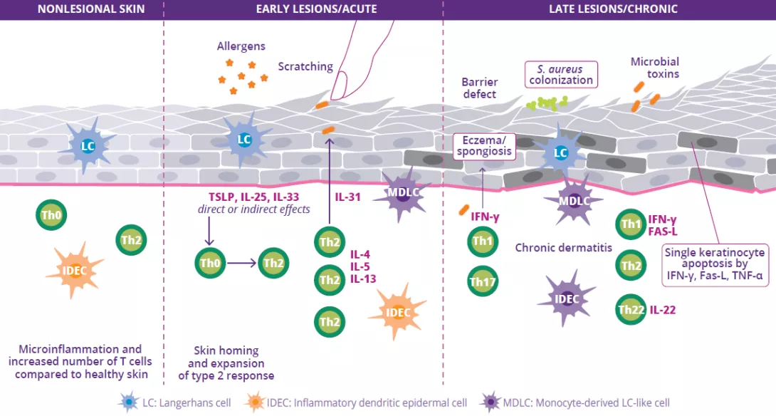 The immune dysregulation in atopic dermatits leads to a major cytokine surge, which in turn causes the inflammatory reactions.2