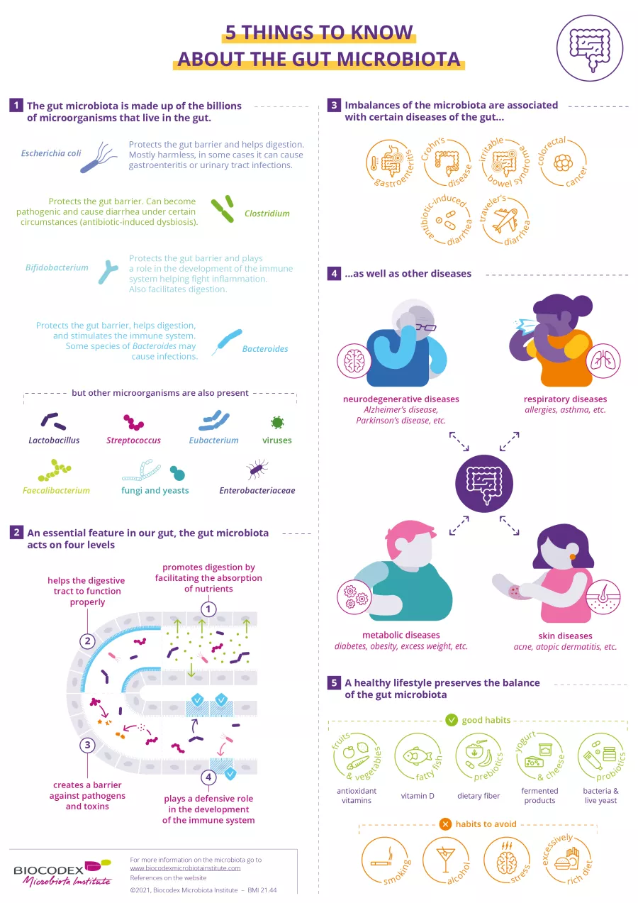 Download original and engaging graphic materials to explain to your patients the essential role of the microbiota in their daily health. These clear and accessible infographics are specifically designed to simplify complex concepts and enhance understanding of the connections between the microbiota and well-being.