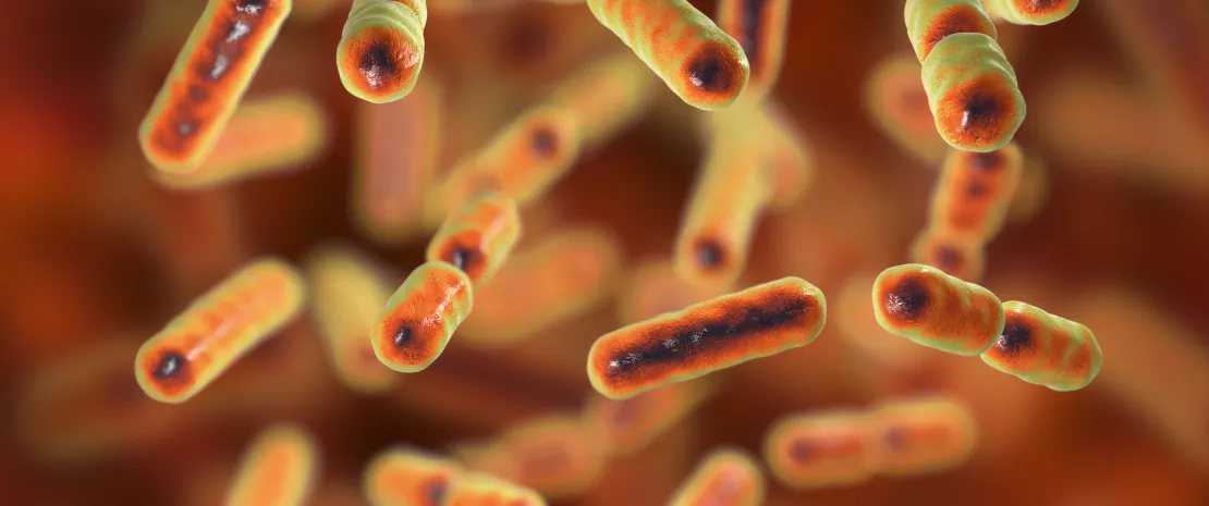 Computer illustration of Bacteroides sp. bacteria. These are rod shaped, obligate anaerobic, Gram-negative, saccharolytic bacteria.