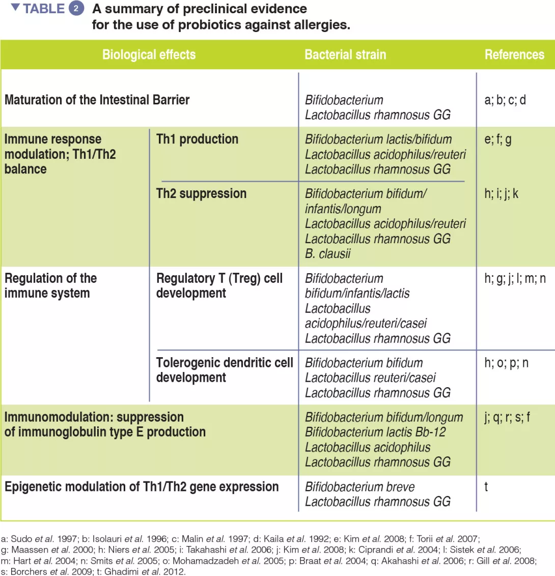Emerging evidence supports the use of selected dietary strategies and probiotic strains for the prevention and treatment of allergies (Table 2).
