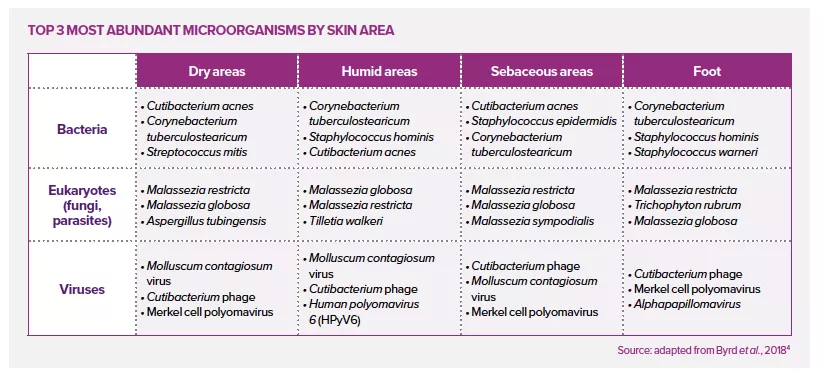 The fourth most populated microbial niche in the human body,2 the skin is home to a complex community of microorganisms.2 Bacteria, fungi, parasites and viruses live together on the skin in a unique balance specific to each individual, to the point where some investigators speak of an individual microbial fingerprint.5