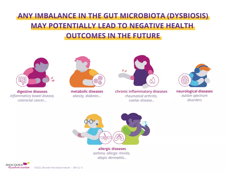 Antibiotics, delivery method, diet... all these factors that impact and destabilize the gut microbiota can have long-term effects on susceptibility to disease (allergic rhinitis among many others).9