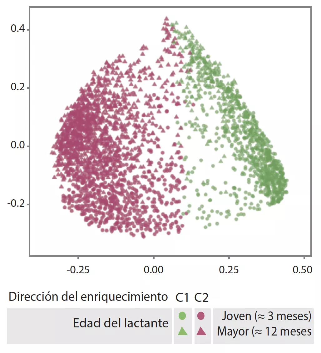 Agrupaciones de la microbiota intestinal C1 y C2 (análisis de los componentes principales).