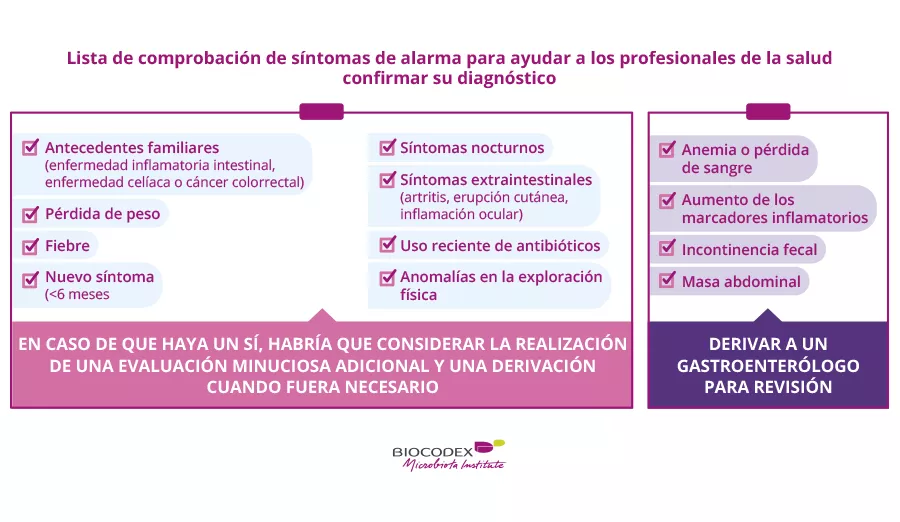 Por este motivo, el Profesor Jean-Marc Sabaté, el Profesor Jan Tack, el Dr. Pedro Costa Moreira y el Instituto de Microbiota Biocodex han desarrollado una herramienta de lista de comprobación para ayudar a diagnosticar el SII y mejorar la comunicación con el paciente. Esta herramienta ha sido aprobada por la Organización Mundial de Gastroenterología.