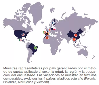Por segundo año consecutivo, el Biocodex Microbiota Institute encargó a Ipsos una gran encuesta internacional sobre la microbiota: el Observatorio Internacional de la Microbiota. Ipsos realizó la encuesta entre 7500 personas de 11 países (Francia, España, Portugal, Polonia, Finlandia, Marruecos, Estados Unidos, Brasil, México, China y Vietnam). En cada país, la muestra es representativa de la población del país mayor de 18 años, en términos de sexo, edad, profesión y región. La encuesta se realizó por internet entre el 26 de enero y el 26 de febrero de 2024. Estos son los principales hallazgos.