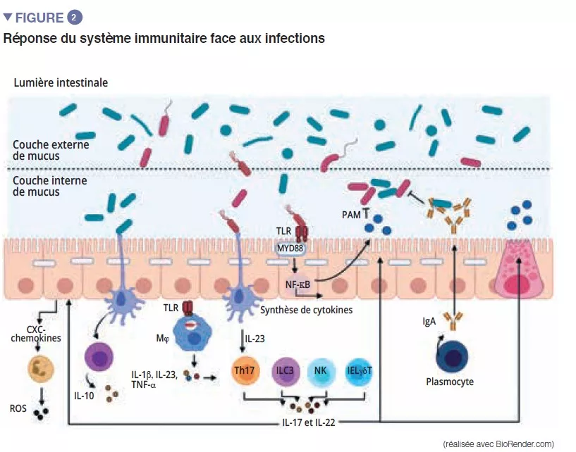 Dialogue entre le microbiote intestinal et les réponses immunitaires de l'hôte pour lutter contre les infections