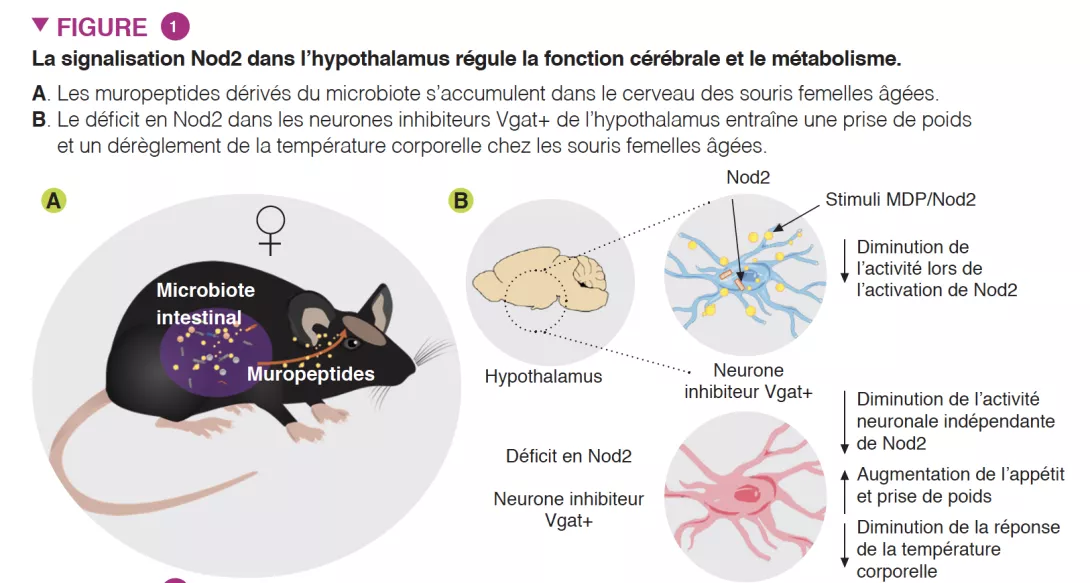 - La régulation de l’appétit et de la température corporelle est perturbée chez les souris femelles âgées déficitaires en Nod2