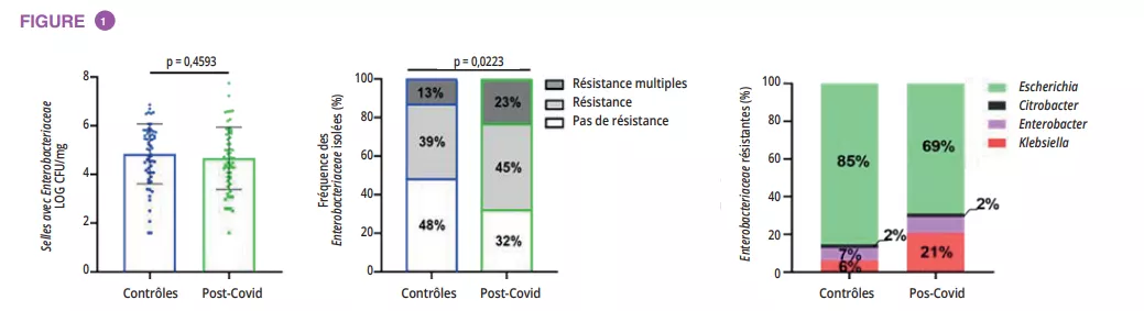 - Les souches Enterobacteriaceae avec un phénotype antibiorésistant sont très présentes dans le microbiote intestinal des patients post-Covid