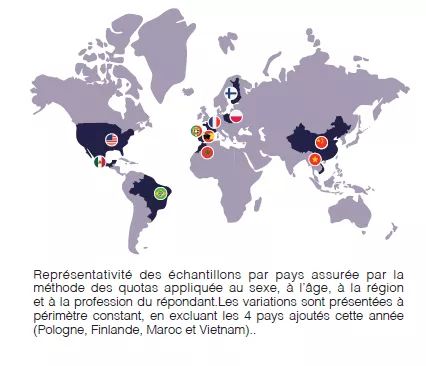 Pour la deuxième année consécutive, le Biocodex Microbiota Institute a confié à Ipsos la réalisation d’une grande enquête internationale sur le microbiote : l’Observatoire International des Microbiotes. L’enquête a été menée par Ipsos auprès de 7 500 personnes dans 11 pays (France, Espagne, Portugal, Pologne, Finlande, Maroc, États-Unis, Brésil, Mexique, Chine et Vietnam). Dans chaque pays, l’échantillon interrogé est représentatif de la population du pays âgée de 18 ans et plus en termes de sexe, d’âge, de profession et de région. L’enquête a été réalisée par Internet, du 26 janvier au 26 février 2024. Voici les principaux enseignements.