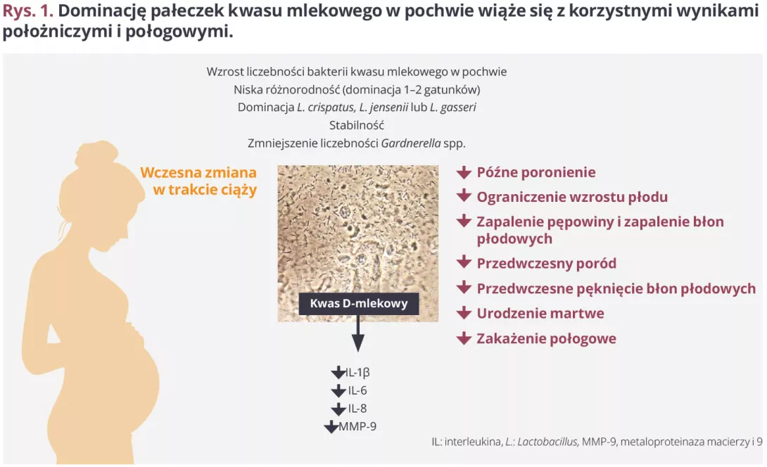 Rys. 1. Dominację pałeczek kwasu mlekowego w pochwie wiąże się z korzystnymi wynikami położniczymi i połogowymi