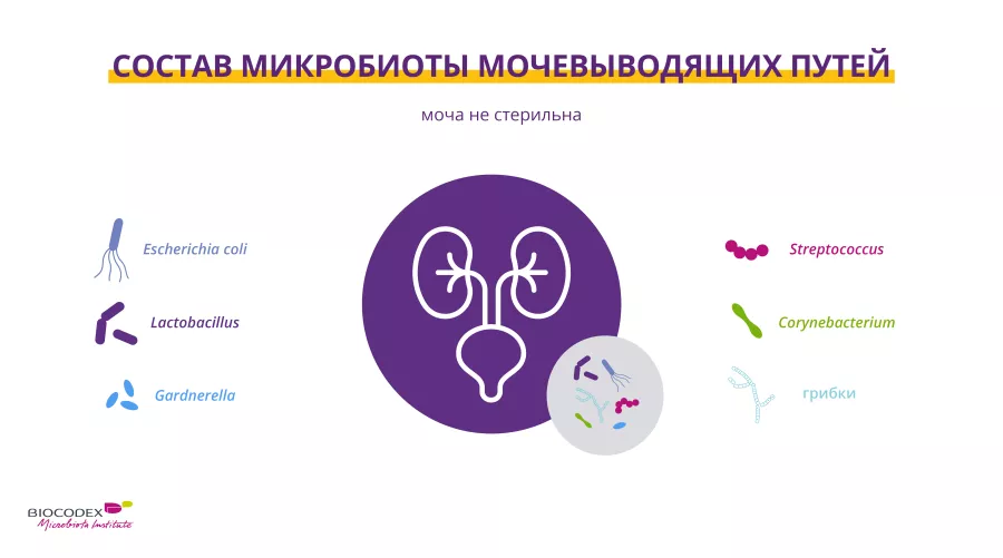 Новые технологии обнаружения микроорганизмов позволили выявить другие виды бактерий в составе микробиоты мочевыводящих путей. Чаще всего обнаруживают представителей рода Lactobacillus и, в меньшей степени, Gardnerella, Streptococcus и Corynebacterium.3 Также выявлены различные сообщества грибков.6