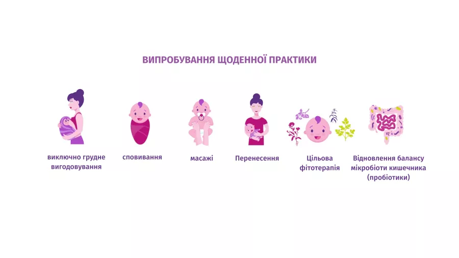 Сімейний лікар залишається першим пунктом призначення, який діагностує коліки у немовляти та може заспокоїти батьків.10 Ліків від кольок не існує, але кілька простих щоденних практик можуть допомогти полегшити симптоми. До них відносяться грудне вигодовування, виношування дитини і збалансування кишкової мікробіоти вашої дитини, особливо за допомогою пробіотиків.5 Пробіотики, мабуть, є перспективним напрямком, оскільки споживання "хороших" бактерій протягом декількох місяців може зменшити запалення кишківника,6 допомогти скоротити щоденну тривалість плачу.11 Оскільки вони допомагають підтримувати хороший кишковий баланс то пробіотики також можна використовувати в якості профілактичних засобів.5