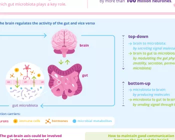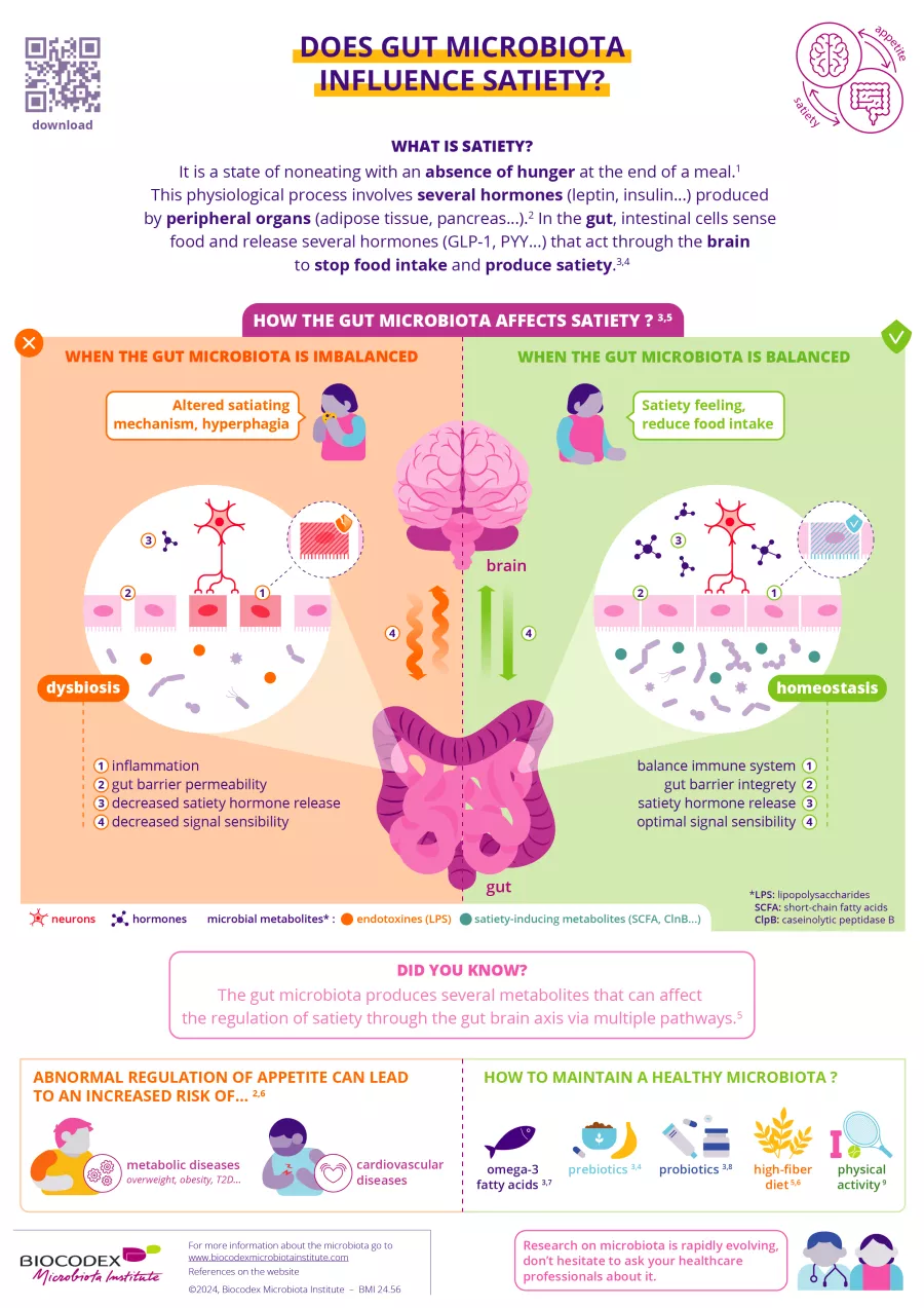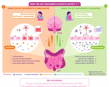 This infographic helps healthcare professionals explain to their patients how the gut microbiota influences satiety.