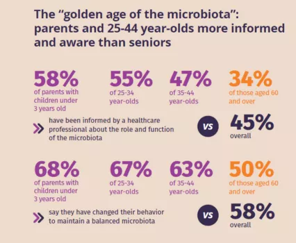 - Parents of children under 3 and the 25-44 age group are more aware and informed: this is the “golden age for the microbiota.”