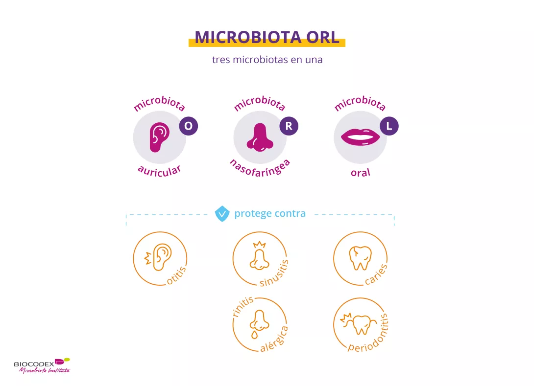 Esta patología se asocia a un desequilibrio de la microbiota ORL (nariz-garganta-oídos) e intestinal, también denominado « (sidenote: Disbiosis La disbiosis no es un fenómeno homogéneo ya que varía en función del estado de salud de cada individuo. Se define generalmente como una alteración de la composición y funcionamiento de la microbiota, provocada por un conjunto de factores ambientales y relacionados con el individuo, que alteran el ecosistema microbiano. Levy M, Kolodziejczyk AA, Thaiss CA, et al. Dysbiosis and the immune system. Nat Rev Immunol. 2017;17(4):219-232. ) ».