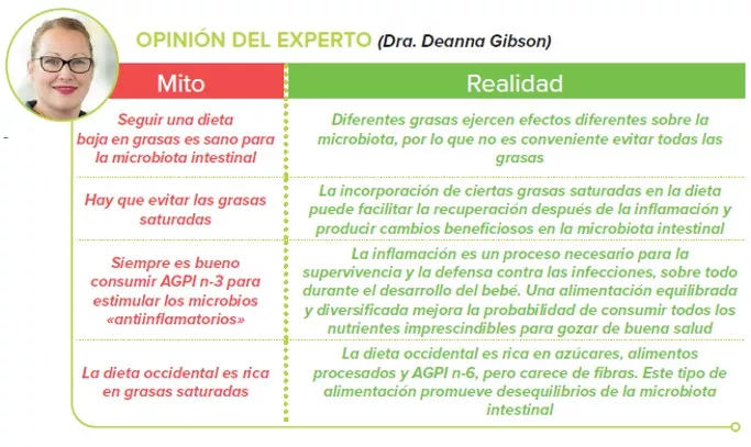 Existen muchas formas de modificar la composición de la microbiota intestinal y modular la respuesta inmune (prebióticos, probióticos, etc.)31 Una de las opciones disponibles consiste en intervenciones dietéticas que pueden alterar la actividad del sistema inmunitario local, moderando así la inflamación que acompaña a estas afecciones. A este tipo de intervención se le llama inmunonutrición.32 Entre los inmunonutrientes más estudiados figuran los ácidos grasos poliinsaturados omega-3 (AGPI n-3), la vitamina D, la arginina, los nucleótidos y la glutamina.32