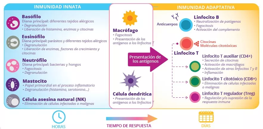 FIGURA 2: Las células de los sistemas inmunitarios innato y adaptativo y sus respectivas