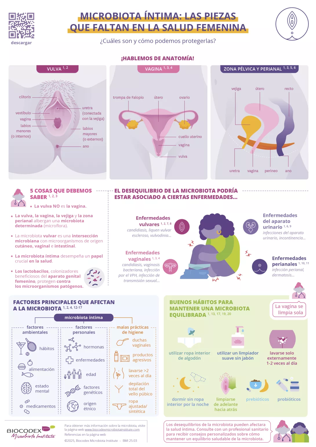 Esta infografía explora la microbiota íntima, un componente esencial, aunque a menudo ignorado, de la salud de la mujer.