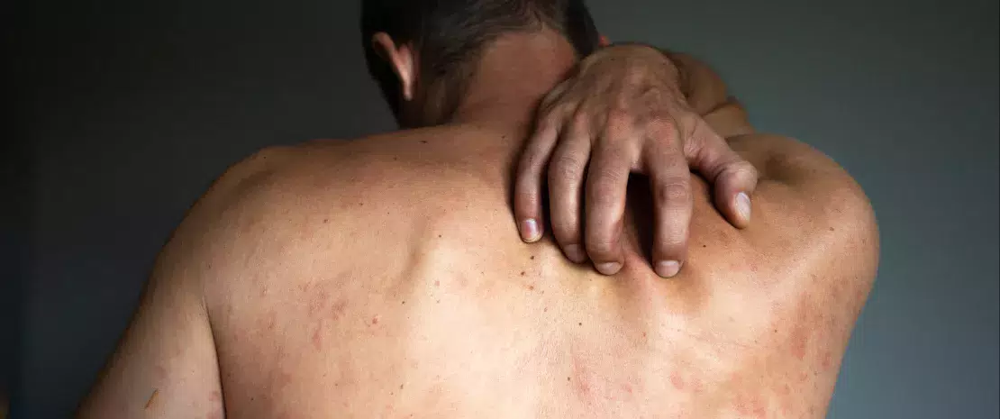 L'eczéma allergique, ou dermatite atopique, est une maladie de peau associant sécheresse cutanée et démangeaisons. Non contagieuse, cette dermatose est favorisée par une prédisposition aux allergies dans lesquelles le microbiote jouerait un rôle important.
