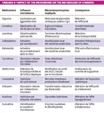 Les interactions entre le microbiote et les médicaments ont des implications cliniques non négligeables. En effet, les différences individuelles au niveau du microbiote peuvent expliquer la variabilité de la réponse aux médicaments et des effets secondaires. Il faut noter que la composition du microbiote n’est pas le seul facteur influençant les résultats du traitement ; c’est également le cas de sa stabilité fonctionnelle.