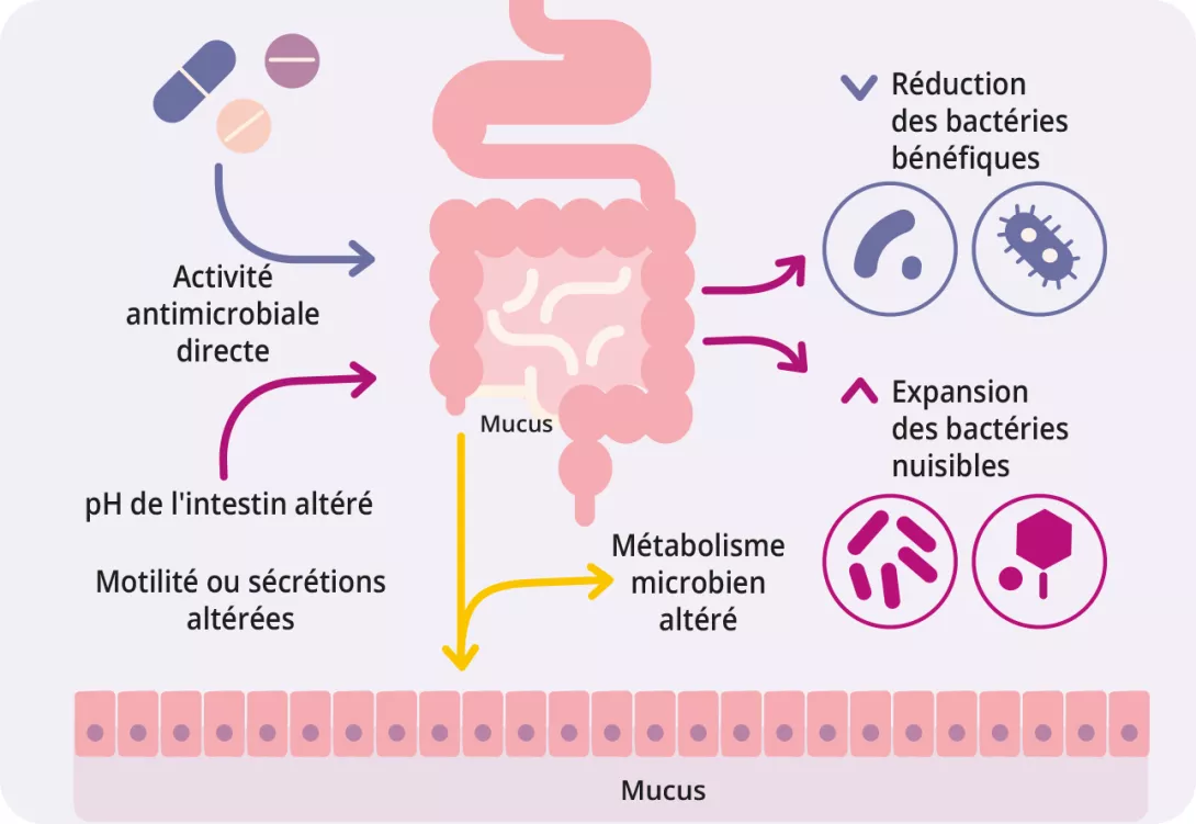 Perturbation du microbiote induite par les médicaments : antibiotiques et autres
