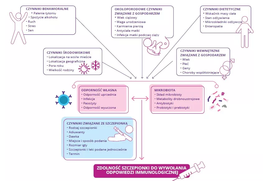 Wykazano wpływ większości tych czynników na skład mikrobioty jelit i odporność wrodzoną. Zdolność szczepionki do wytwarzania odporności zależy również od czynników związanych ze szczepionką.