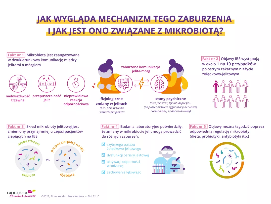 Różne badania podkreślają znaczenie mikrobioty jelitowej w rozwoju IBS i wykazują różnice w składzie mikrobioty jelitowej osób z IBS w porównaniu z osobami zdrowymi 5. Można zatem zaproponować rozwiązania polegające na modulacji mikrobioty jelitowej w celu poprawy objawów IBS 20.