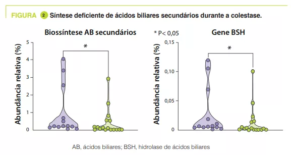 Nos recém-nascidos extremamente prematuros, a colestase altera o desenvolvimento da microbiota intestinal, reduzindo a aquisição de Clostridium perfringens e a capacidade de síntese de ácidos biliares secundários. Inversamente, um aumento de certos ácidos biliares, ligado à atividade da BSH, está associado a um melhor crescimento neonatal.
