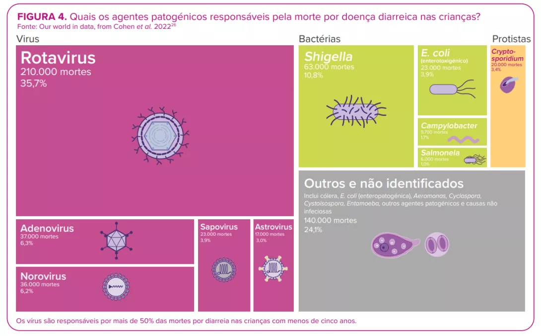 De entre todos os agentes patogénicos diarreicos, e apesar da existência de vacinas, o rotavírus continua a ser o principal responsável pela morte de crianças com menos de cinco anos de idade. 2