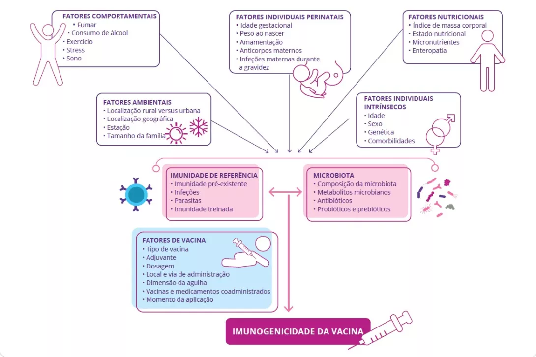 Demonstrou-se que a maioria destes fatores influenciam também a composição da microbiota intestinal e a imunidade de referência. A imunogenicidade das vacinas também depende dos fatores intrínsecos das próprias vacinas.