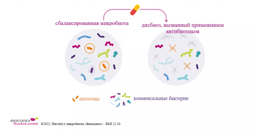 Однако, хотя антибиотики убивают патогенные бактерии, вызывающие инфекции, они могут уничтожать и некоторые полезные бактерии в нашей микробиоте, вызывая дисбаланс в этой сложной экосистеме — дисбактериоз. 3