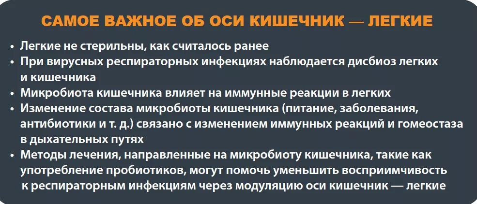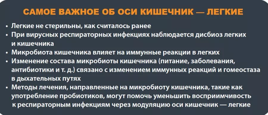 Ось кишечник — легкие при вирусных инфекциях дыхательных путей