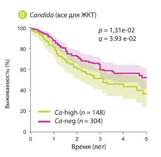 - Повышенное содержание ДНК Candida в некоторых опухолях может ассоциироваться с плохим прогнозом
