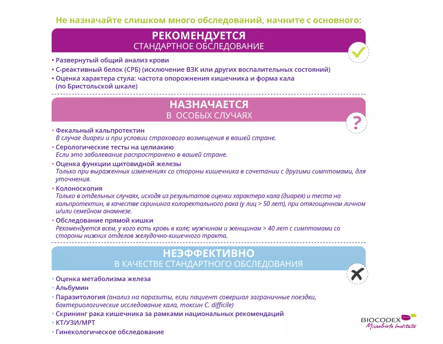 Поэтому, проф. Жан-Марк Сабате, проф. Ян Так, доктор Педро Коста Морейра и Институт Микробиоты Biocodex совместно разработали инструмент Чек-лист, чтобы помочь в диагностике СРК и общении с вашим пациентом. Этот инструмент СРК получил одобрение Всемирной Гастроэнтерологической Организации.