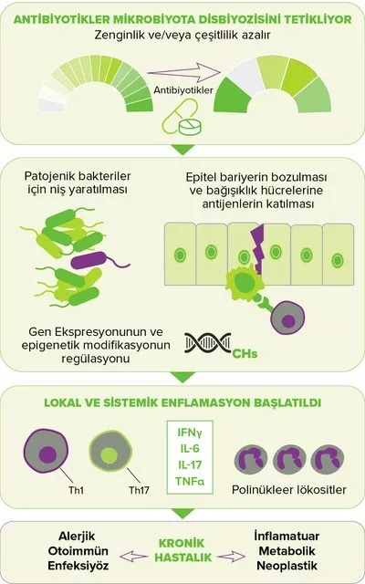 Diyareden kroni̇k hastaliklara: antibiyotik ile bağlantili bağirsak mikrobiyotasi disbiyozisnin iyi belgelenmiş sonuçlari