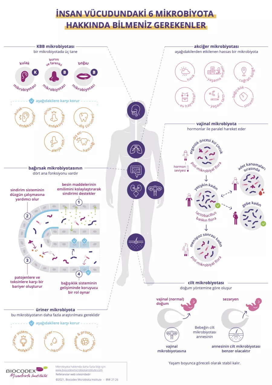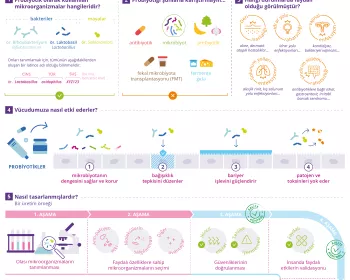 Hastalarınıza mikrobiyotanın günlük sağlıklarındaki hayati rolünü açıklamak için orijinal ve ilgi çekici grafik materyaller indiriniz. Bu açık ve erişilebilir infografikler, karmaşık kavramları basitleştirmek ve mikrobiyota ile iyilik hali arasındaki bağlantıları anlamayı güçlendirmek için özel olarak tasarlanmıştır.