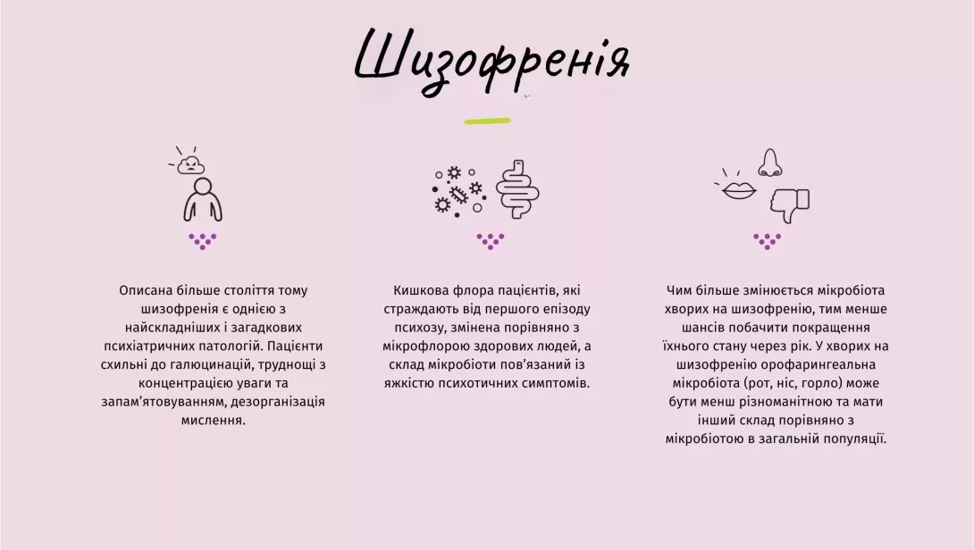 Стан психіки таких пацієнтів характеризується коливаннями між фазами депресії та фазами надмірного збудження, «маніакальними епізодами». Склад кишкової мікробіоти пацієнтів відрізняється від мікробіоти здорових людей, і її різноманітність особливо знижена у хворих жінок.