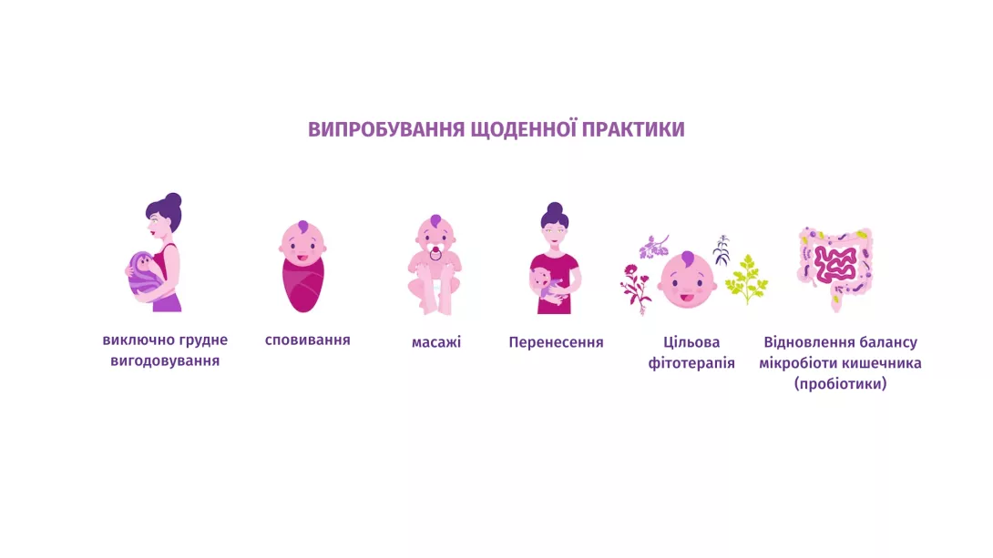 Сімейний лікар залишається першим пунктом призначення, який діагностує коліки у немовляти та може заспокоїти батьків.10 Ліків від кольок не існує, але кілька простих щоденних практик можуть допомогти полегшити симптоми. До них відносяться грудне вигодовування, виношування дитини і збалансування кишкової мікробіоти вашої дитини, особливо за допомогою пробіотиків.5 Пробіотики, мабуть, є перспективним напрямком, оскільки споживання "хороших" бактерій протягом декількох місяців може зменшити запалення кишківника,6 допомогти скоротити щоденну тривалість плачу.11 Оскільки вони допомагають підтримувати хороший кишковий баланс то пробіотики також можна використовувати в якості профілактичних засобів.5
